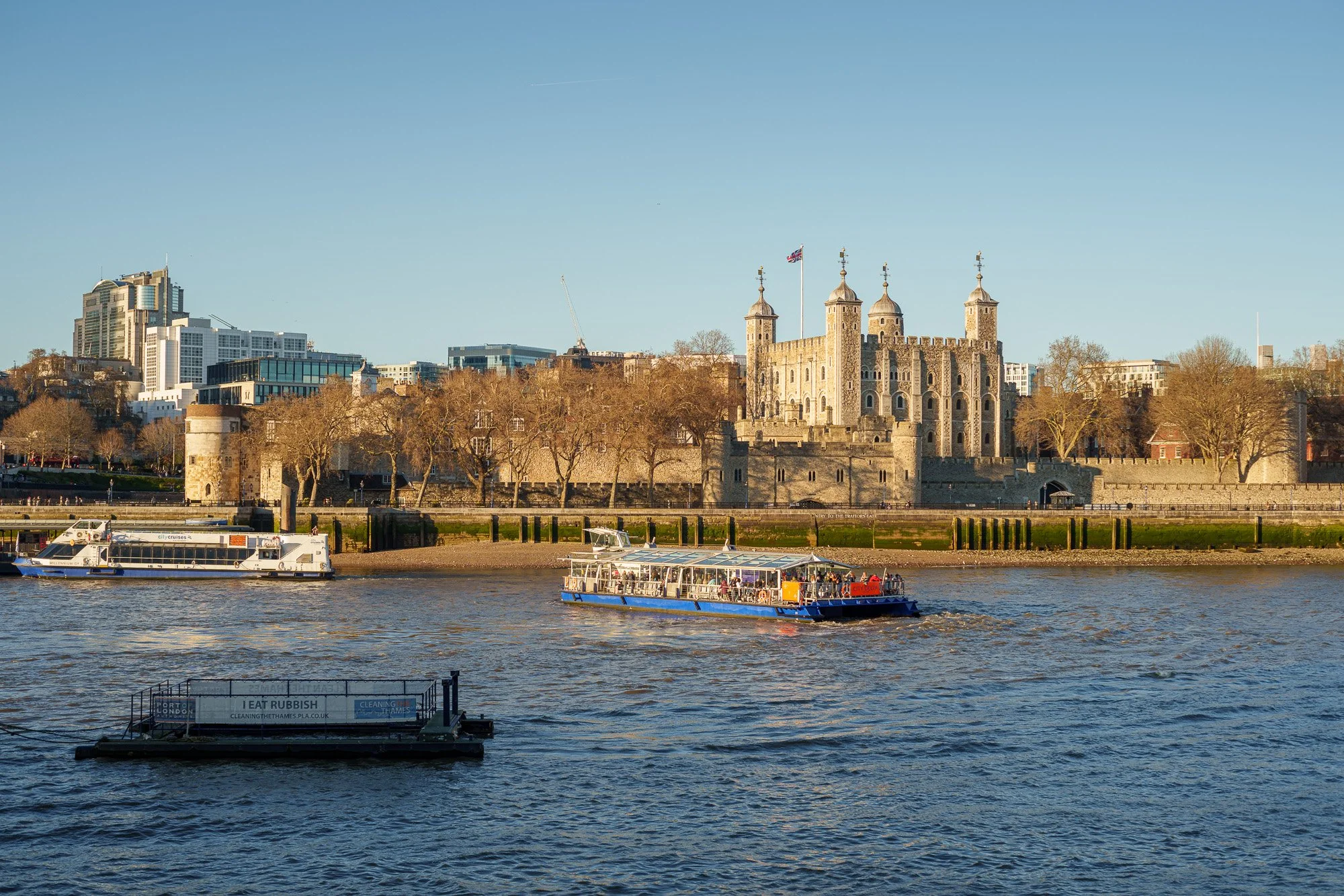 April 2023, Tower of London in evening light and a seemingly busier river.